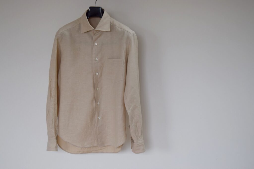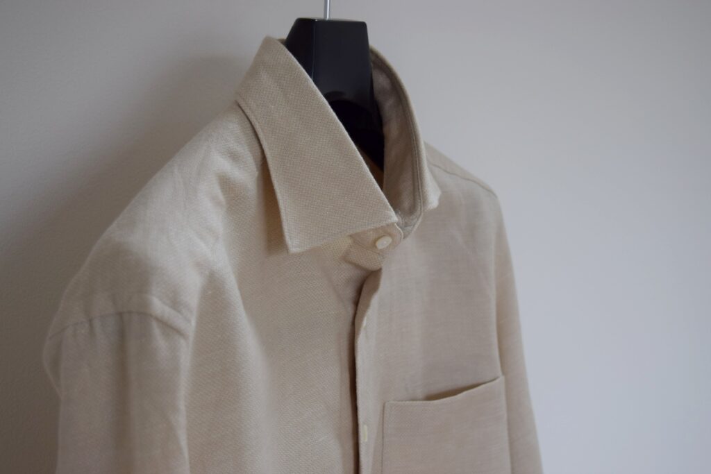 カジュアルなのかドレスなのか曖昧。特に襟芯と洗いざらしと襟ぐりの効用なのだろうが、ビジネスで着ると抜栓してしばらく経った酒のようなこなれた柔らかさが出る。生地に艶があるので、崩れすぎずジャケットにも合う。不思議とあやしさはなく、バランスが保てている。もちろんデニムやカーゴに合わせても成立するし、品はあるが緊張感がない感じで留まる。