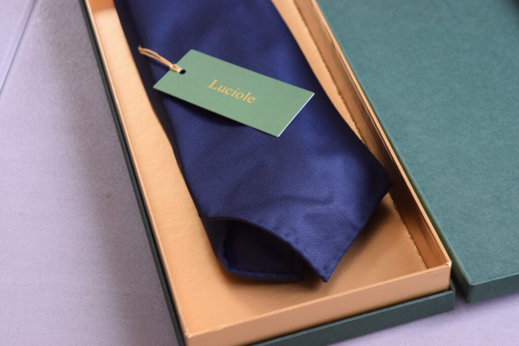 はい。5年くらい前から一部で持て囃されてるスーツ地ネクタイ。いい生地は持っているので、ちょっとこれでお願いできませんかとアトリエで頼んで作ってもらった。たいそうな箱に入って届きます。ギフトにめっちゃいいと思います。